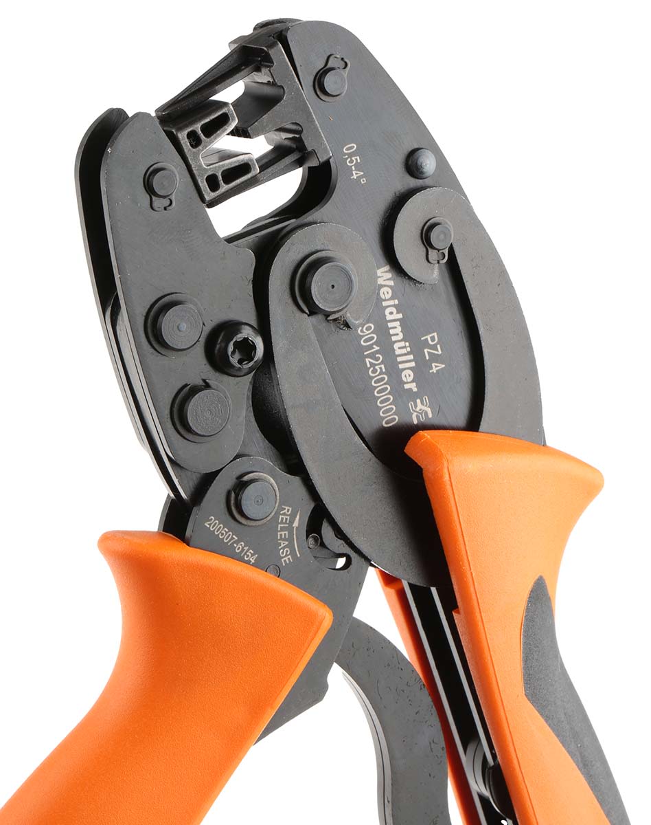The ratchet is pre-set to a specific force and remains locked until the handles of the tool are fully closed and the dies are bottomed. The handles cannot be opened until a full crimping cycle is achieved therefore preventing partial crimps. Once the cycle is complete the handles re-open. The ratchet also enables the operator to repeatedly produce consistent, high-quality crimps. This hand crimp tool also features a ratchet release mechanism which releases the tool handle in the event of obstructions or miscrimps