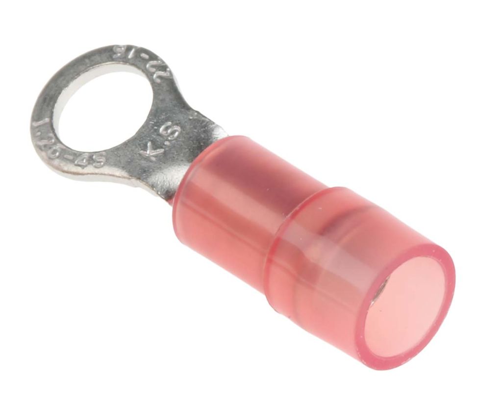 "RS PRO Insulated Ring Terminal, M4 (#8) Stud Size, 0.5mm² to 1.5mm² Wire Size, Red" added to the basket