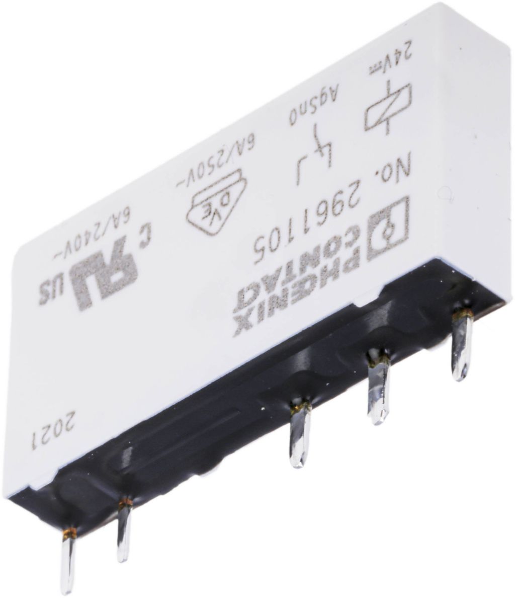 | Product description | Phoenix Contact, 24V dc Coil Non-Latching Relay SPDT, 10mA Switching Current PCB Mount Single Pole, 2961105 |