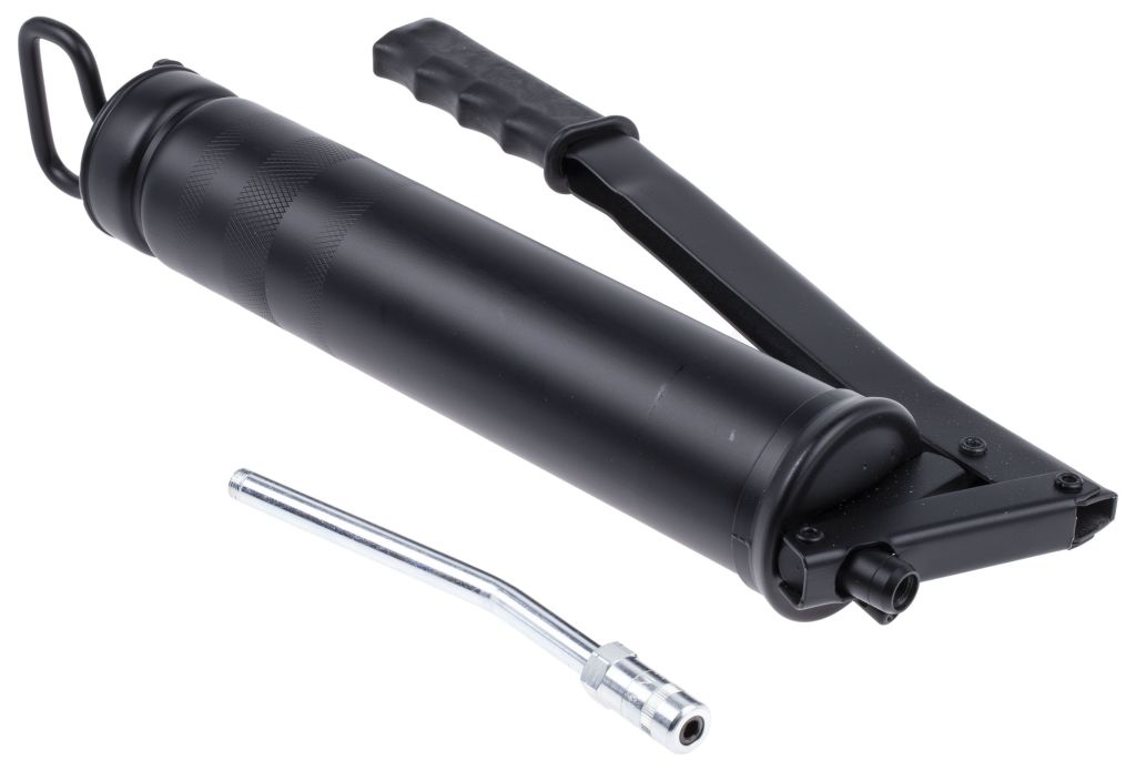 RS PRO high pressure manual grease gun features a long handled lever that allows application with single handed operation. The manual grease pump has a 16oz (450g) capacity and dispenses an average 1.5g of grease per pump action. The grease chamber can be loose filled or use grease cartridges up to 400g.