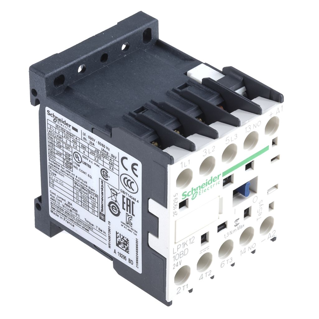 | Product description | Schneider Electric TeSys K LP1K 3 Pole Contactor - 12 A, 24 V dc Coil, 3NO, 5.5 kW |