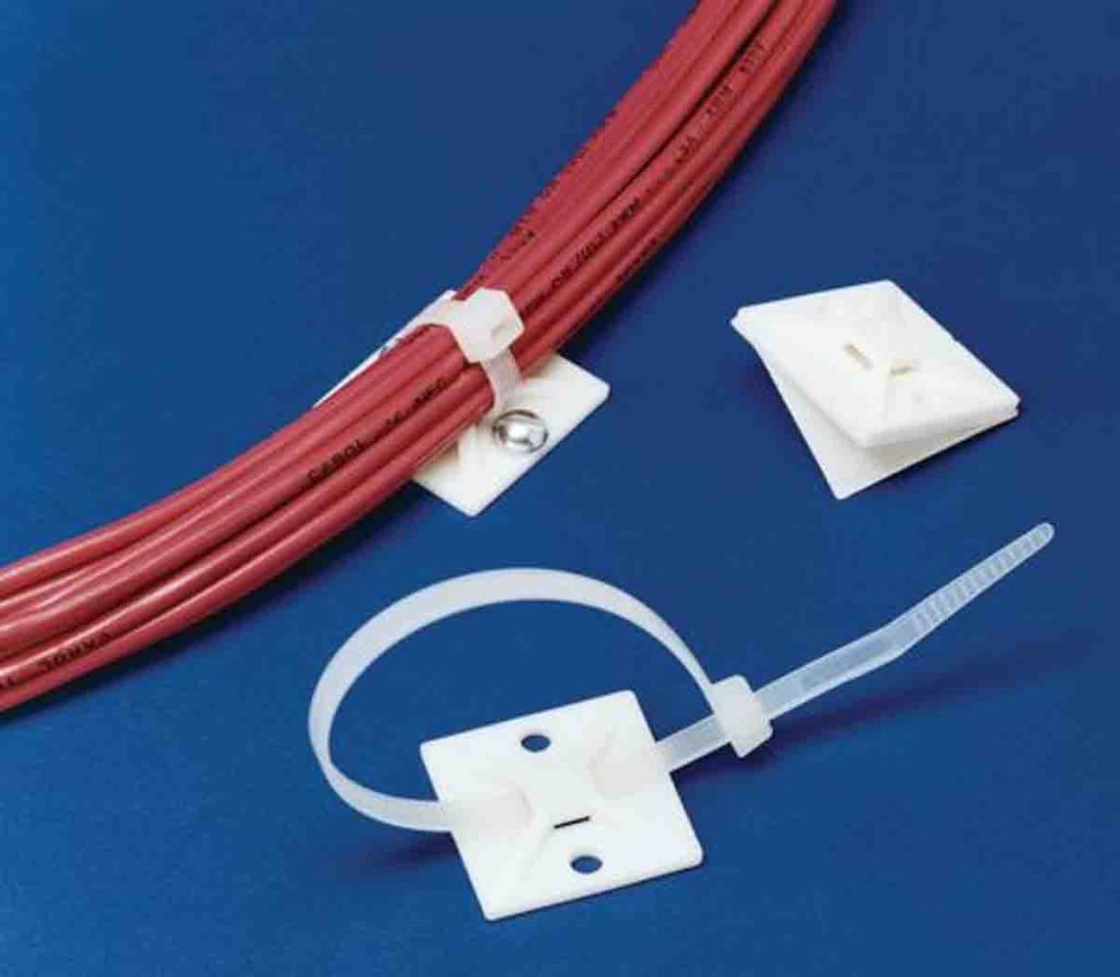HellermannTyton self-adhesive cable tie mounts that provide a fast and simple way of securing cable ties. MB series mounting bases allow ties to be inserted from all 4 sides. Ideal for cable management for use in control cabinets, telecoms equipment or domestic appliances where the use of holes, screws or nuts and bolts is impractical or undesirable.