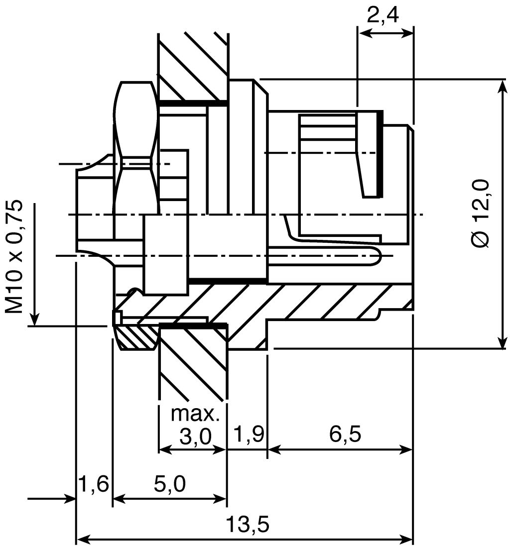 The subminiature circular connectors in the 710 series have a bayonet joint. When mated they comply with protection type IP40.The distortion protection (coding lug) guarantees secure positioning. Strain relief is via a ferrule. Connection type: solder.