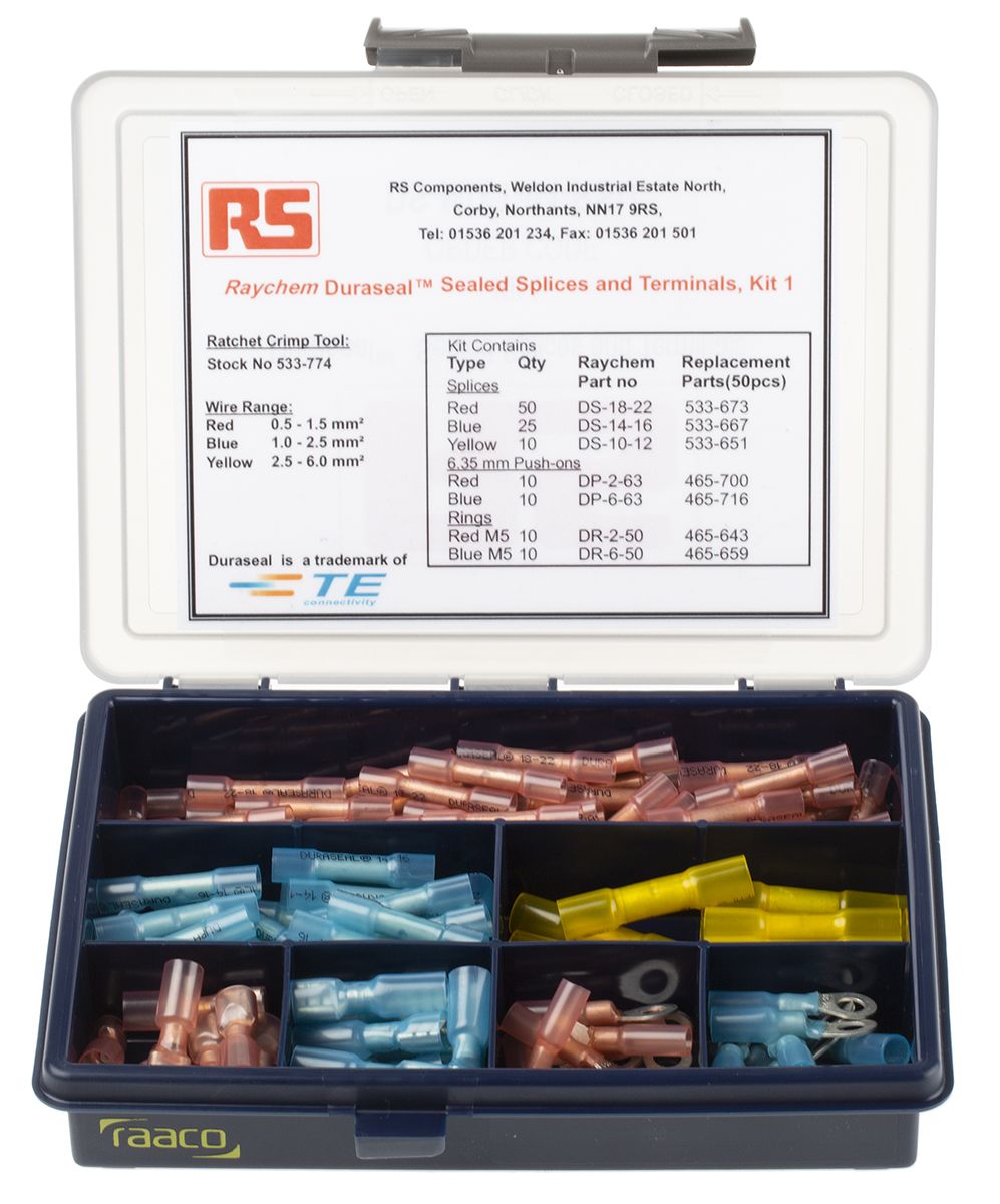 | Product description | TE Connectivity DuraSeal Service and Repair Heat Shrink Terminals and Splices Crimp terminal Kit |