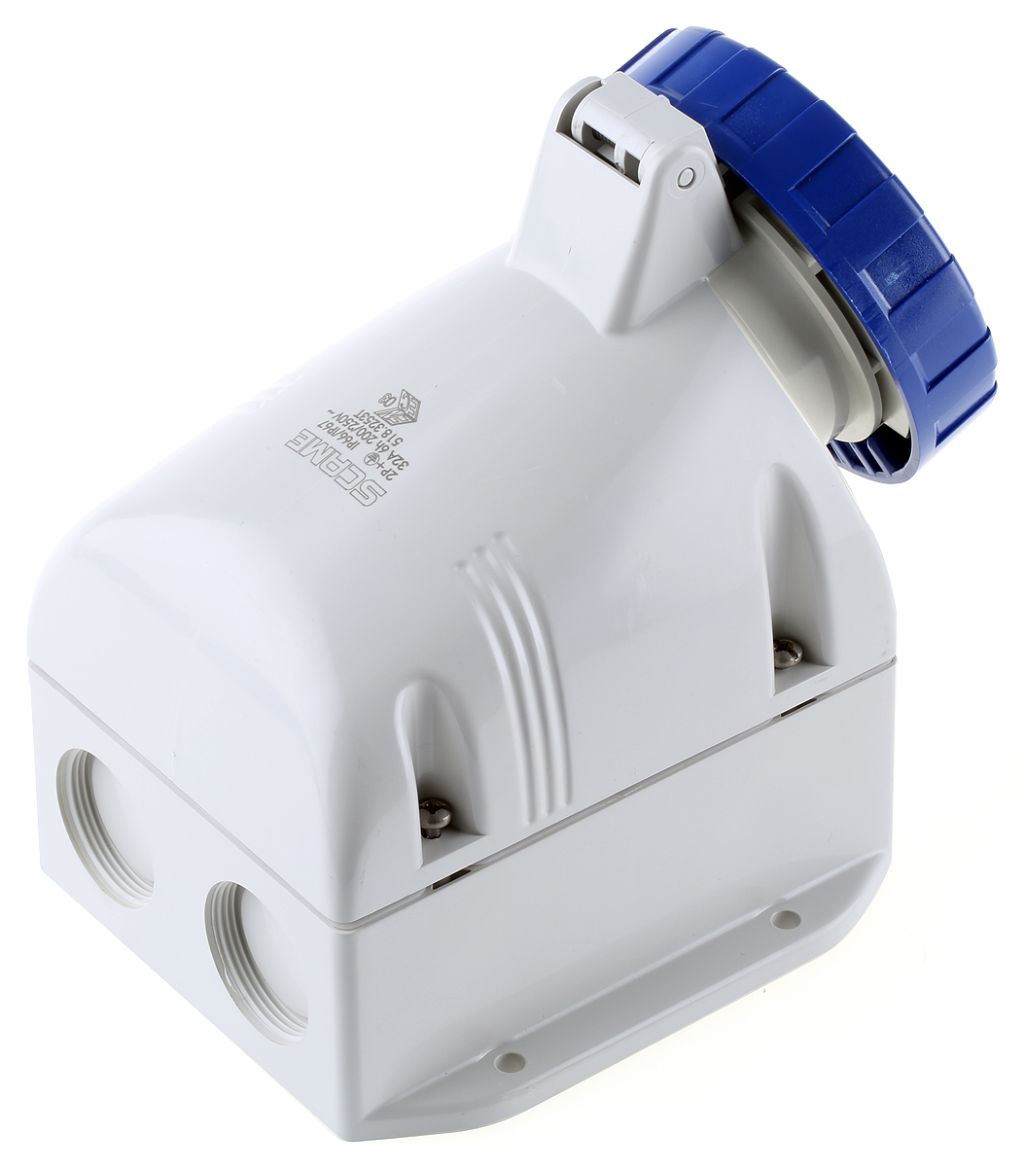 | Product description | Scame IP66, IP67 Blue Wall Mount 2P+E Industrial Power Socket, Rated At 32A, 230.0 V |