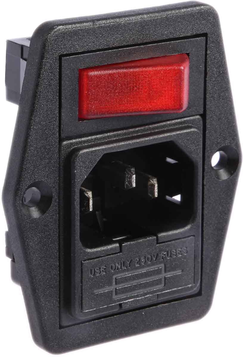 | Product description | Bulgin C14 Panel Mount IEC Connector Male, 10A, 250 V, Fuse Size 5 x 20mm |