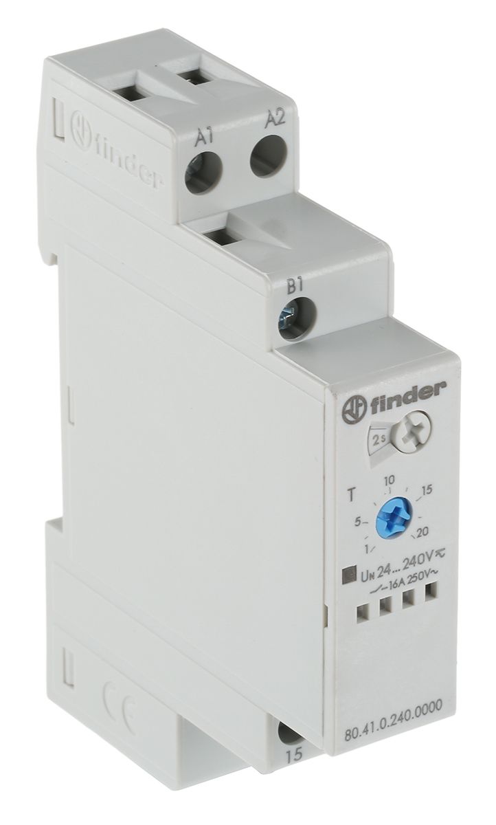 | Product description | Finder SPDT Timer Relay, 24 → 240V ac/dc 0.1 → 20 s, 0.1 → 20 min, 0.1 → 24h, DIN Rail Mount |