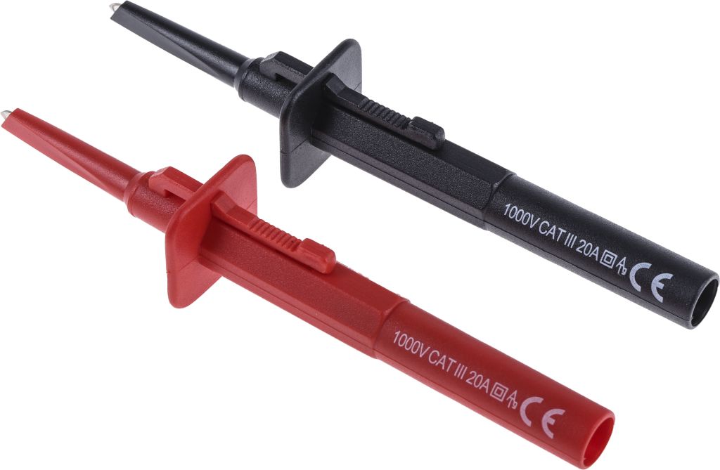 A range of accessories with 4 mm shrouded socket connections intended for use with the multimeter test lead set, CAT III, CAT IV, 600 V, 1000 V. All accessories meet the requirements of EN61010 to their rated voltage.