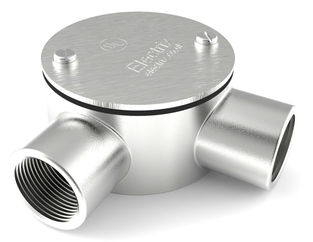 Product description RS PRO Angle Box Conduit Fitting, Silver 25mm nominal size