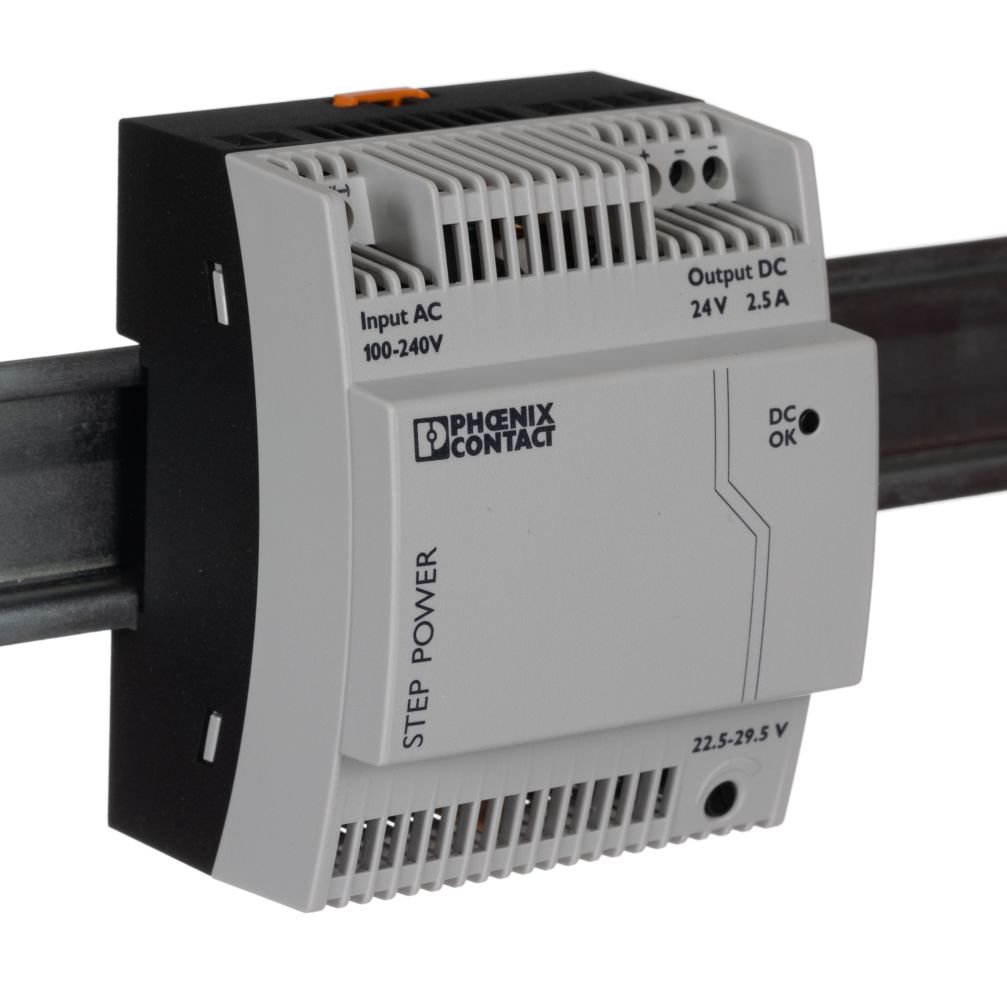 | Product description | Phoenix Contact STEP-PS/1AC/24DC/2.5 Switch Mode DIN Rail Power Supply 85 → 264V ac Input, 24V dc Output, 2.5A |