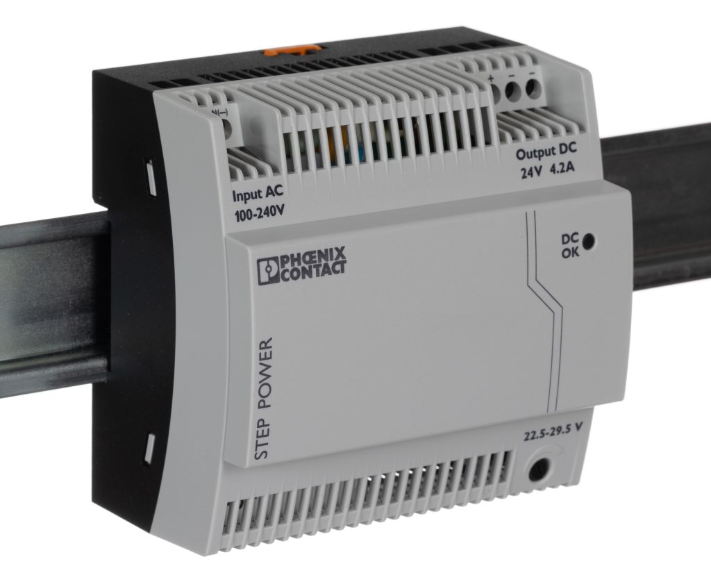 | Product description | Phoenix Contact STEP-PS/1AC/24DC/4 Switch Mode DIN Rail Power Supply 85 → 264V ac Input, 24V dc Output, 4.2A 100W |