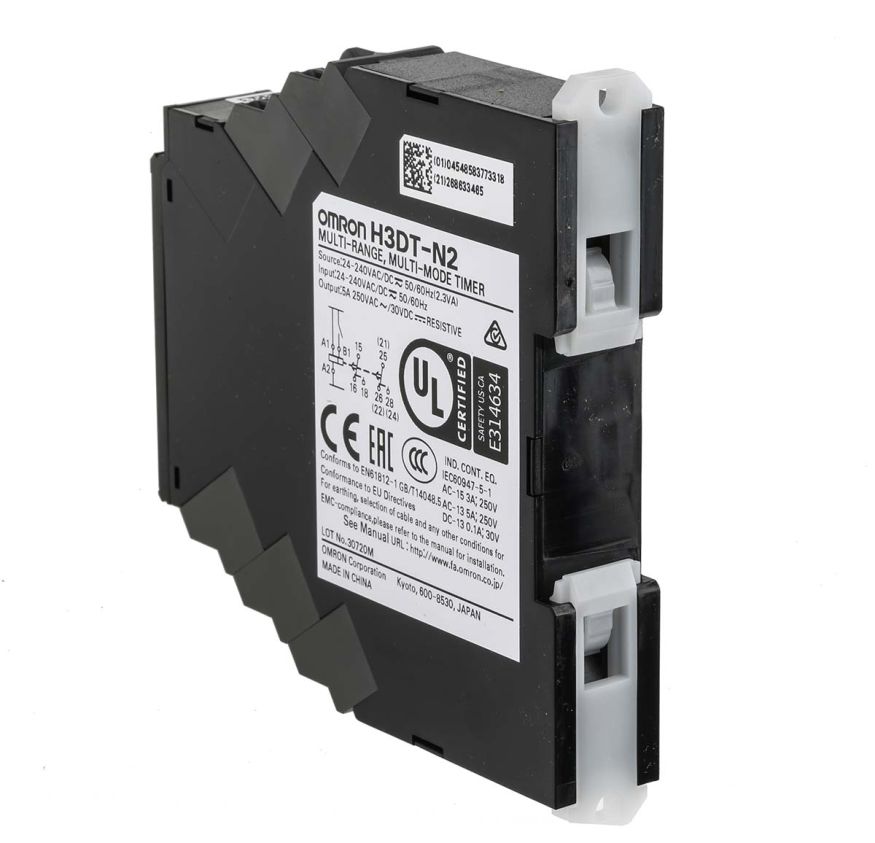 | Product description | Omron DPDT Multi Function Timer Relay, 24 → 240V ac/dc 0.1 s → 100h, DIN Rail Mount |