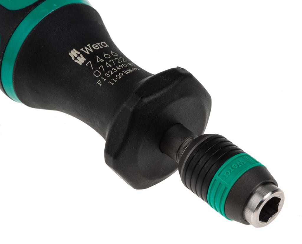 From Wera this is the -inch drive Kraftform adjustable screwdriver complete with the Rapidaptor quick-release chuck. The quick release chuck allows you to quickly and easily change the screwdriver bits plus you are provided with unlimited torque to loosen seized and stubborn screws. The torque screwdriver has a -inch hex drive and has the recognizable Wera design, is easy to use and set also giving you the satisfying audible and tactile clicks when your required settings and scale values are reached. Torque values required are easy to adjust and no other tools are required to adjust to the required torque, with a range from 11.0 to 29.0 in.lbs. To complete this handy adjustable torque screwdriver, it has the multi-component Kraftform ergonomic handle, easy and comfortable on the hand with hard and soft areas. This is a torque screwdriver giving you maximum precision and the best possible results that must be in your tool kit.