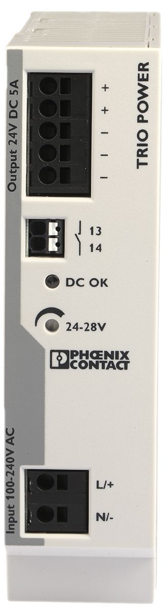 Product description Phoenix Contact TRIO-PS-2G/1AC/24DC/5 Switch Mode DIN Rail Power Supply 85 → 264V ac Input, 24V dc Output, 5A