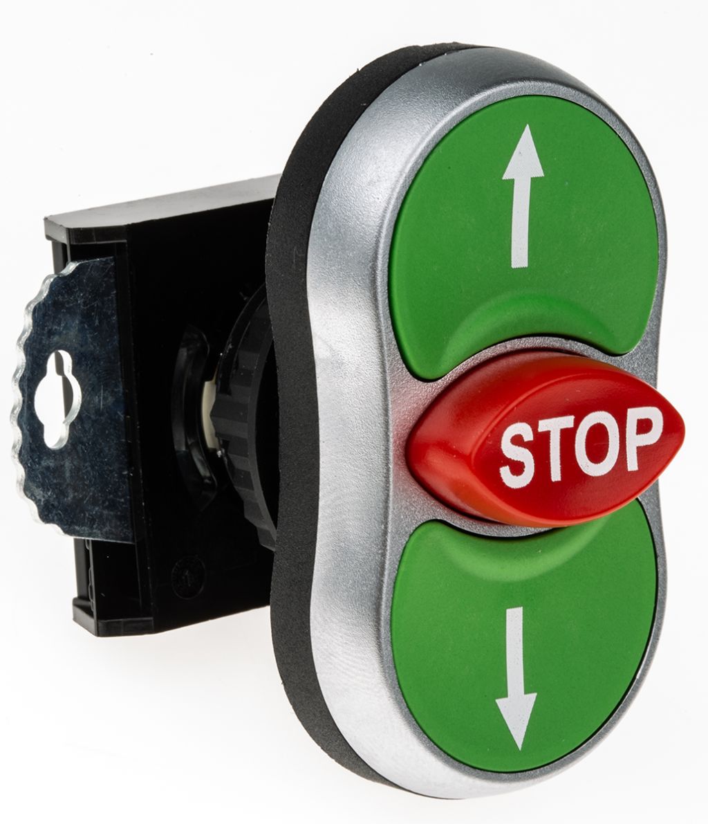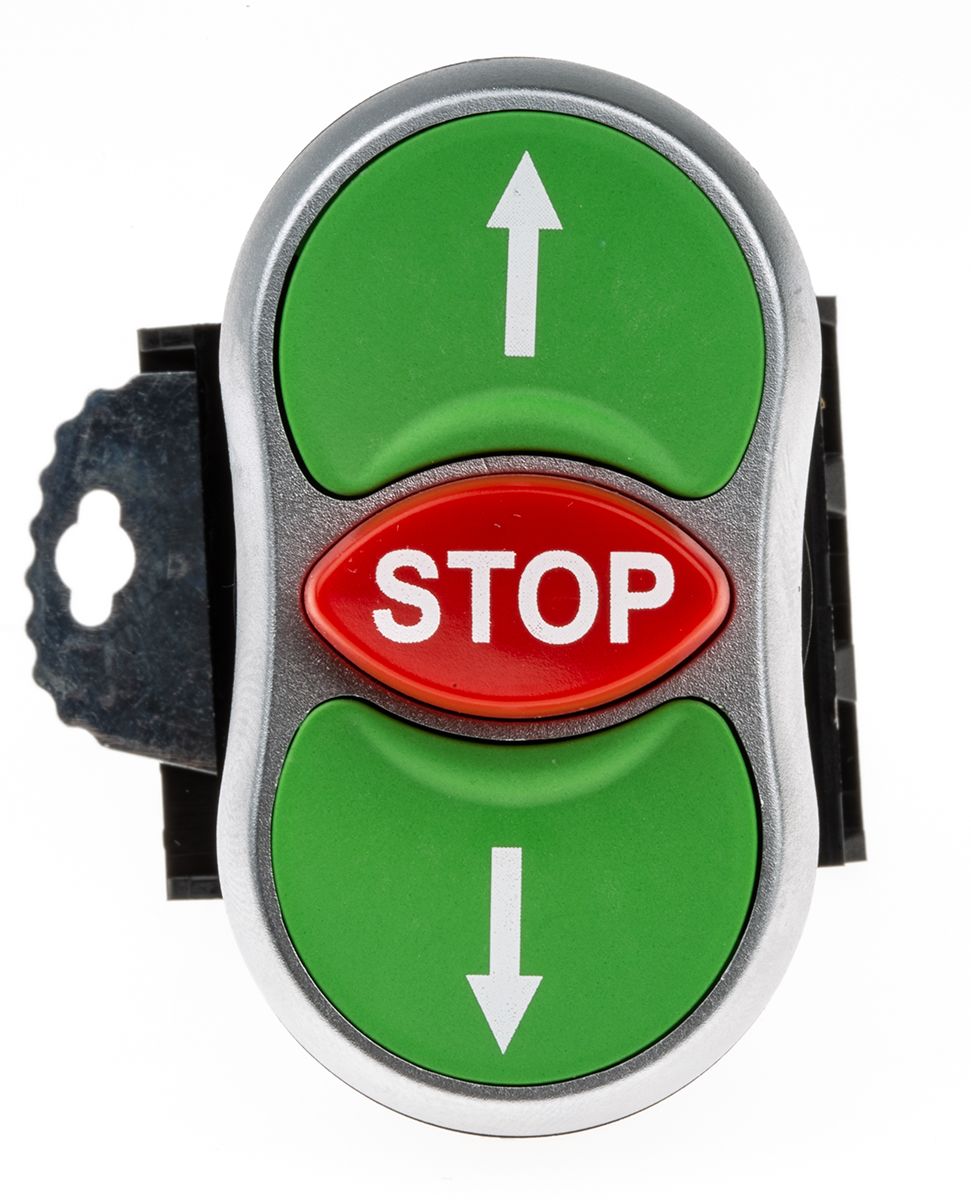 | Product description | BACO Oval Green/Red/Green Push Button Head - Spring Return, 22mm Cutout, Round |