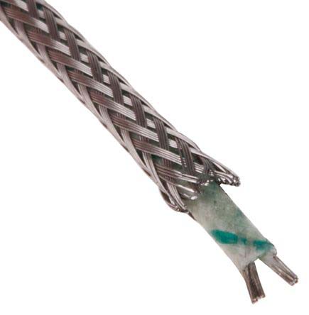 Glassfibre insulated flat pair cables in thermocouple types; K, J N or T. Types KX & TX are available in solid 1/0.3mm, JX in 7/0.2mm stranded conductors. Glassfibre insulated flat pair construction, with glassfibre jacket and silicone varnish throughout. The thermocouple cables are also available with a stainless steel overbraid for added protection.