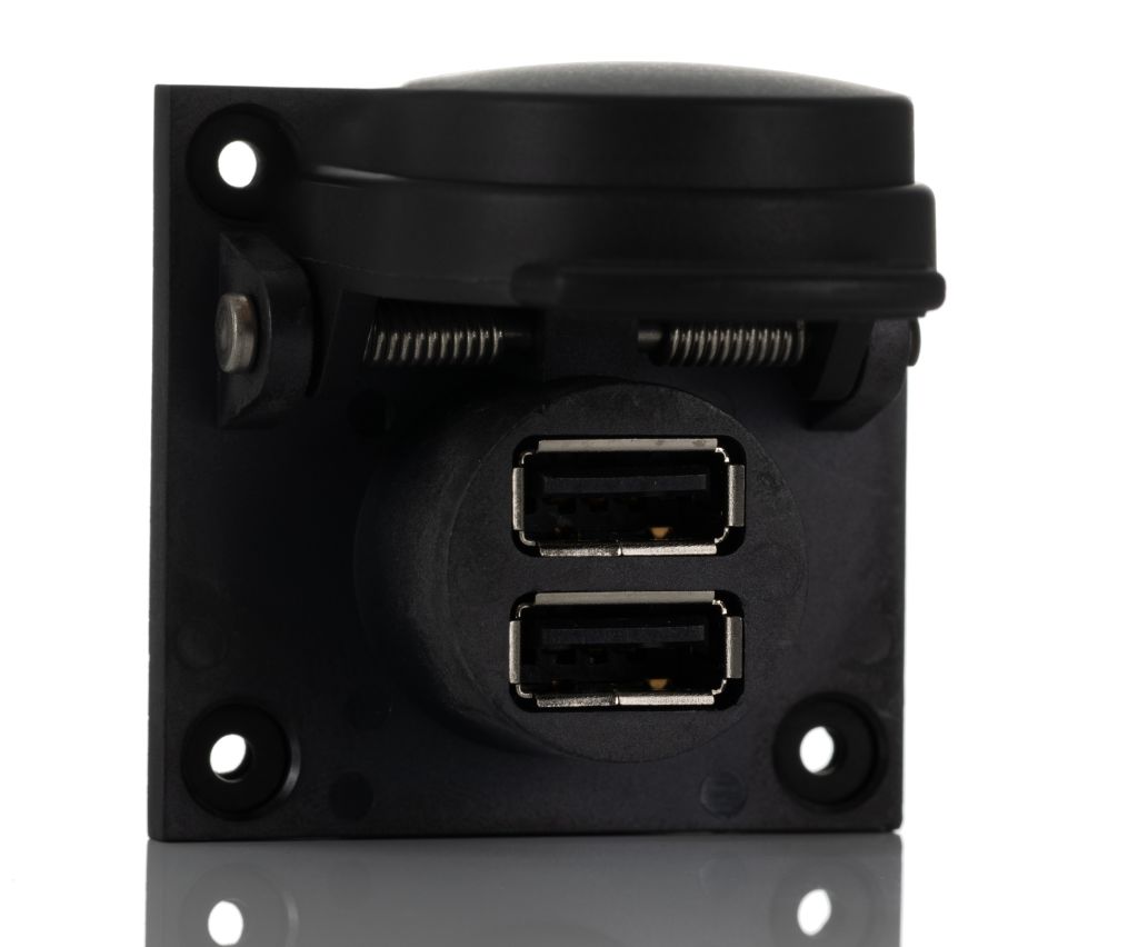 Brought to you by RS Pro, a range of superior quality waterproof USB-A panel mount jacks. The IP65/67 panel mount jacks in this series are manufactured from tough ruggedised materials making them ideal for outdoor applications. The range offers standard mounting types, couplers and square flange types with dual USB-A receptacles integral sealing caps. All models are highly reliable and excellent quality.