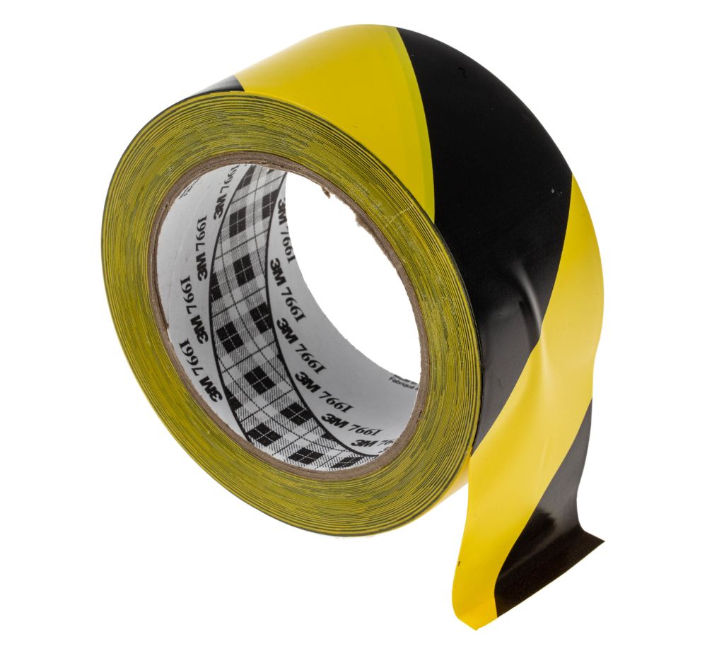 The 3M™ 766 is a Hazard Lane Marking Tape in a black and yellow striped vinyl tape. Used for marking hazardous areas, protruding equipment, or preventing accidents in factories, warehouses and hospitals.