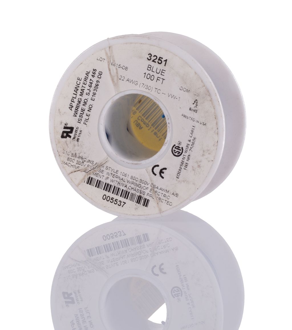 | Product description | Alpha Wire Blue 0.33 mm² Hook Up Wire, 22 AWG, 7/0.25 mm, 30m |
