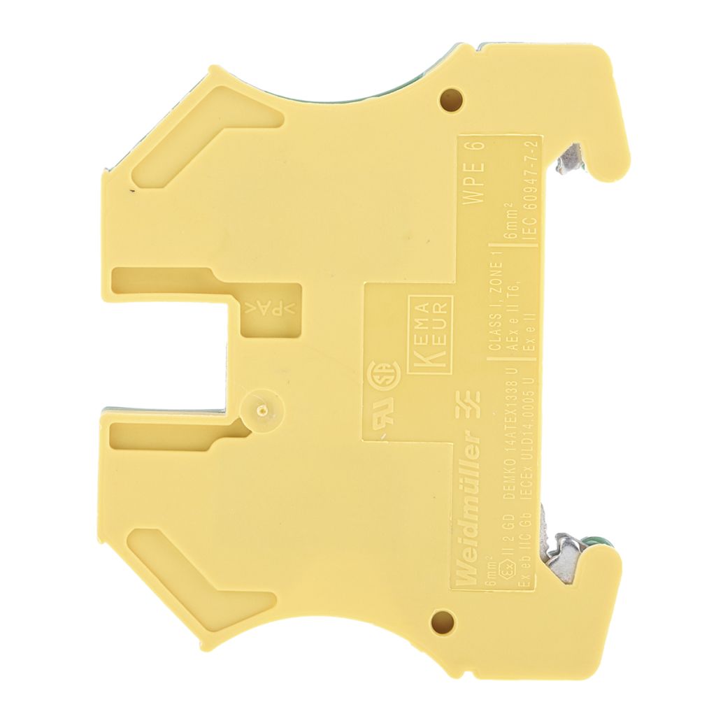 Weidmuller Green/Yellow WPE Earth Block, 20 → 8 AWG, 0.5 → 10mm², ATEX, 800 V