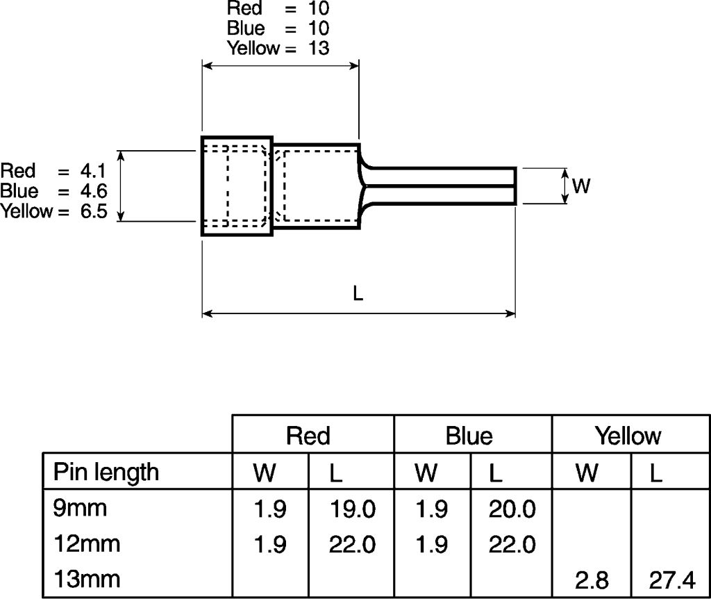 Product description RS PRO Insulated Crimp Pin Connector, 4mm² to 6mm², 12AWG to 10AWG, 2.8mm Pin Diameter, 14mm Pin Length, Yellow